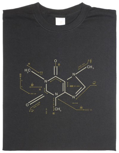 Koffein ist nicht nur für lange Programmiernächte unabdingbar, daher haben wir das lebensrettende Molekül auf ein Shirt gedruckt.