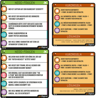 • Beinhaltet unter anderem Fragen zu Filmen, Comics, Naturwissenschaften und TV-Serien