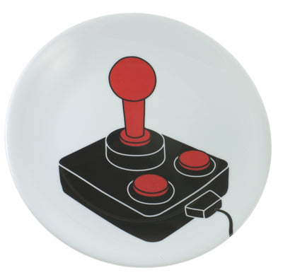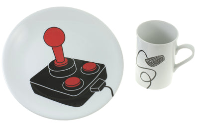 Es besteht aus einem Teller und einer Tasse mit dem Aufdruck eines 80er Jahre Retro-Joysticks (Teller) nebst Kabelanschluss (Tasse). Wenn sie nebeneinander stehen, sieht es aus, als sei der Teller mit der Tasse über das Kabel verbunden.