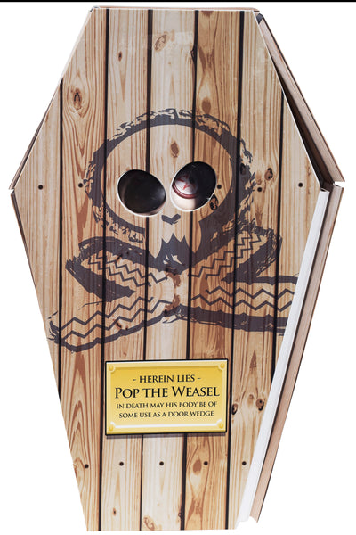 Pop wird natürlich stilecht in seinem eigenen kleinem Sarg geliefert.