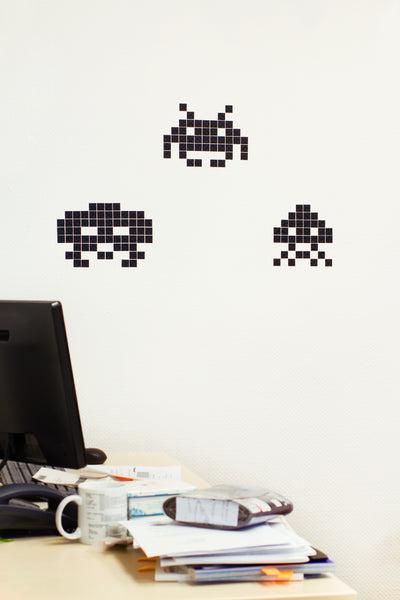 Das Set enthält eine einfache Anleitung, wie Du drei von sechs Space Invadern an Deiner Wand anbringen kannst.