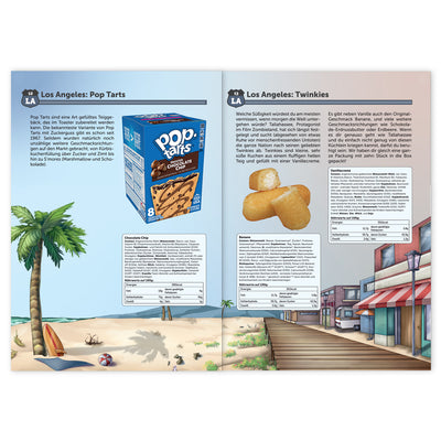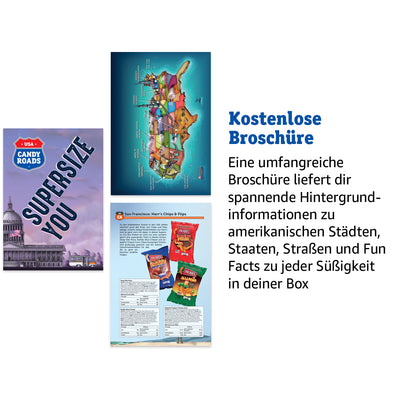 Mit der beiliegenden 40-seitigen Broschüre nehmen wir dich mit auf eine Reise durch das Land der unbegrenzten Süßigkeiten-Vielfalt. Darin erfährst du nicht nur alles über die Inhaltsstoffe und Hintergründe der einzelnen Snacks, sondern erhältst auch spannende Infos zu Pop-, Musik- und Sportkultur der USA. Erinnerst du dich beispielsweise an die
