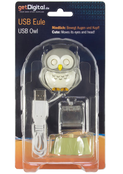 Diese kleine USB Eule kann mit den Augen klimpern und Ihren Kopf nach rechts und links bewegen. Zusätzlich kann man die Flügel manuell verstellen. Du kannst Sie entweder auf den mitgelieferten Baumstumpf setzen und dann auf Deinen Schreibtisch stellen oder aber auf den mitgelieferten Clip setzen und dann an Deinem Monitor befestigen. Die Häufigkeit der Bewegungen der Eule kann zwischen häufig, manchmal und selten eingestellt werden, sodass das leichte Motorengeräusch auch in sehr produktiven Phasen nicht stört.