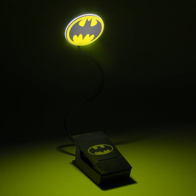 • Leselampe mit flexiblem Arm, die in Form des Bat-Signals leuchtet