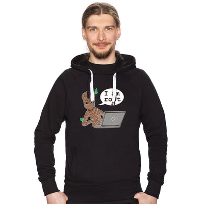 ¿Qué hacen los superhéroes en realidad después de que todos los villanos han sido derrotados? Porque sin villanos, el mundo no necesita héroes. ¡Muy simple: se reciclan y buscan una nueva pasión! ¡Exactamente este camino ha tomado el pequeño hombre árbol, que aparece en la camiseta "I am (G)root".