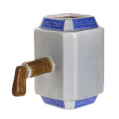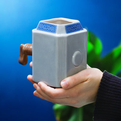 Comienza el día con un buen sorbo de café (o alternativamente néctar y ambrosía) de esta taza, que se asemeja al martillo de guerra de Thor, Mjolnir, siempre y cuando seas verdaderamente digno de él.