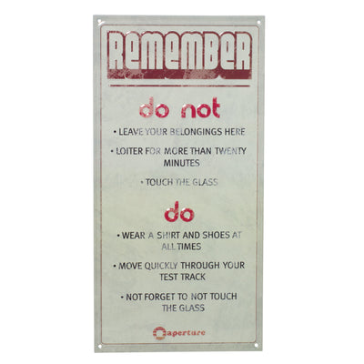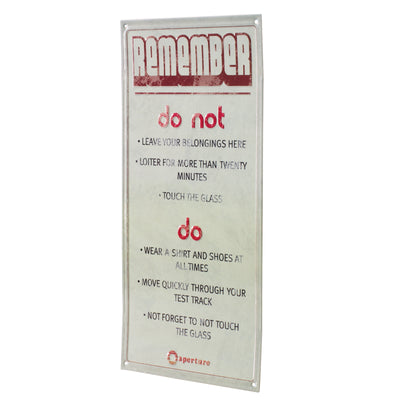 • Signo de estaño con reglas de conducta de los laboratorios de ciencias de apertura del Portal 2
