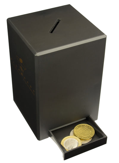 Te sorprenderá cuántas monedas pueden encontrar espacio en una habitación tan pequeña. Si ha ahorrado lo suficiente, simplemente puede abrir la parte posterior en la parte inferior de la escrudo de la escrudo y eliminar su dinero: el dibujo del cajón comienza un proceso de ampliación y sus monedas recuperan sus dimensiones originales para que pueda generar fácilmente: )