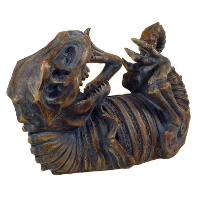 Por supuesto, el esqueleto original terminó en el museo, pero puedes decorar tu hogar con una reproducción detallada de resina que soporta botellas de vino comerciales. Y no te preocupes, el T-Rex no puede beberse tu buen vino - con sus brazos cortos no puede sacar el corcho ni abrir el tapón de rosca. ;)