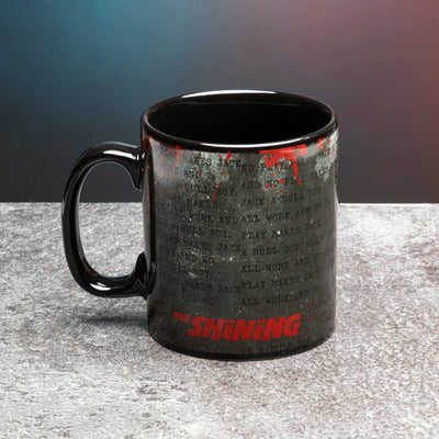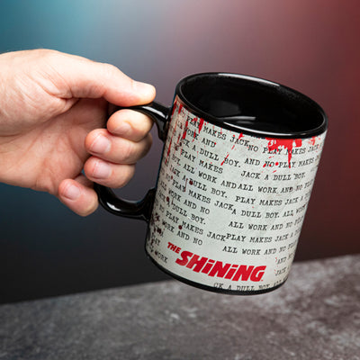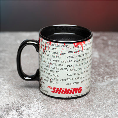 Dieser unheimliche Film-Moment ist nun auch in Form dieses The Shining Thermoeffekt-Becher verewigt. Der Becher sieht im kühlen Zustand fast schwarz aus, doch wenn du heiße Flüssigkeiten in den Becher füllst, wird diese berühmte Schreibmaschinen-Zeile plötzlich schwarz auf weiß (und mit ein paar Blutstropfen) sichtbar. Kühlt der Becher wieder ab, kehrt er in seinen düsteren Normalzustand zurück.