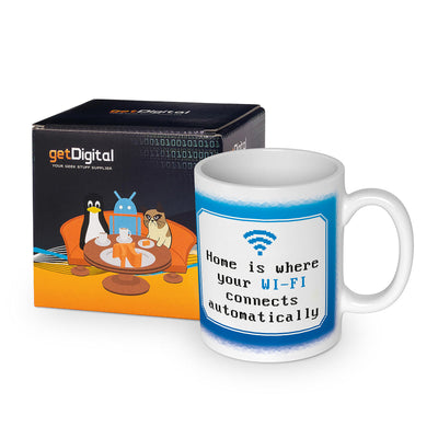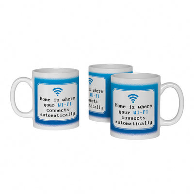 El hogar es un concepto bastante difícil de definir. Para cada persona significa algo diferente y no es raro que surjan acalorados debates políticos en cuanto se menciona el hogar. Nosotros, los nerds, creemos que el hogar se puede definir tan fácilmente como en la taza Wi-Fi: ¡El hogar es donde el Wi-Fi se conecta automáticamente al móvil!