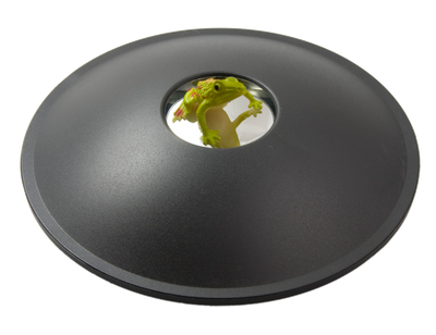 Voici comment cet effet s'explique : l'illusion 3D dispose de deux miroirs courbés superposés. Le miroir supérieur a un trou au milieu. Lorsque vous placez un objet au centre du miroir inférieur, cet objet est réfléchi par les miroirs et apparaît alors au-dessus du trou dans le miroir supérieur comme une réflexion trompeusement réaliste. Vous penserez que vous pouvez toucher l'objet, car il semble absolument réel, mais si vous essayez, vos doigts glisseront simplement à travers. Vous pouvez tourner l'illusion 3D à 360 degrés et observer l'objet en trois dimensions de tous les côtés (mais seulement d'une certaine hauteur, sinon l'illusion n'est pas visible).