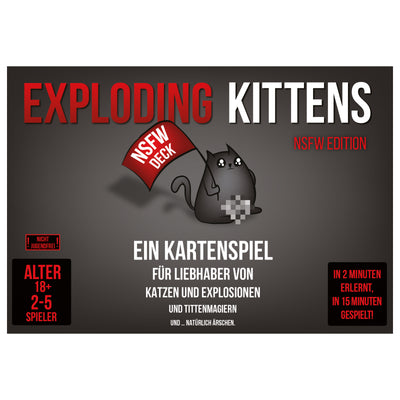 Tu te demandes sûrement : "Mais qu'est-ce qu'une édition NSFW d'Exploding Kittens ? Les chats explosifs sont déjà relativement "not safe for work", non ?" Tu as tout à fait raison, mais il y a toujours moyen d'être un peu plus extrême, comme dans le cas du "Jeu de cartes Exploding Kittens NSFW le prouve de manière impressionnante. Mais sois averti : ce jeu est réservé aux adultes !