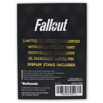 Ce Pin doré en forme de casque Power Armor prouve à quel point tu es un fan fidèle du monde de Fallout. Il est bien protégé sur le support inclus et peut être exposé comme il se doit, avec l'art print doré également inclus. L'édition de ce pin's est limitée à 5 000 exemplaires seulement.