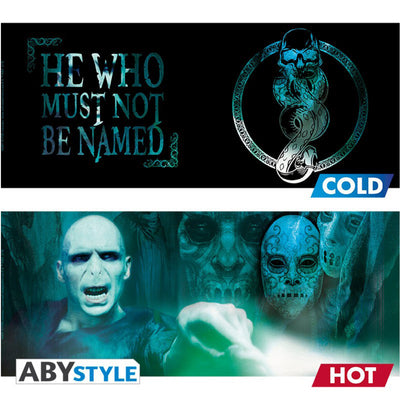 • Lorsqu'il est froid, le gobelet montre la Marque Noire et l'inscription "He Who Must Not Be Named", c'est-à-dire "Celui dont le nom ne doit pas être mentionné"