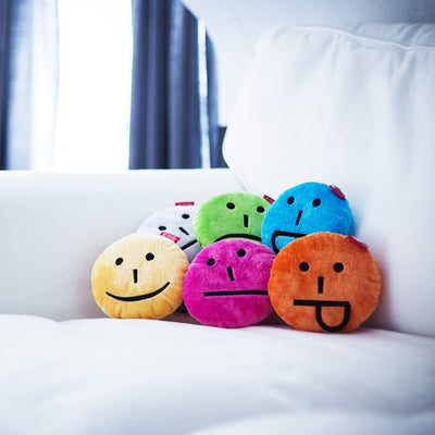 Les coussins sont vendus par lot de 6 smileys et chaque coussin a un diamètre de 13,5 cm.