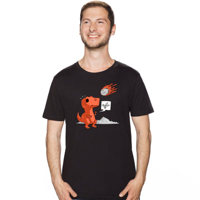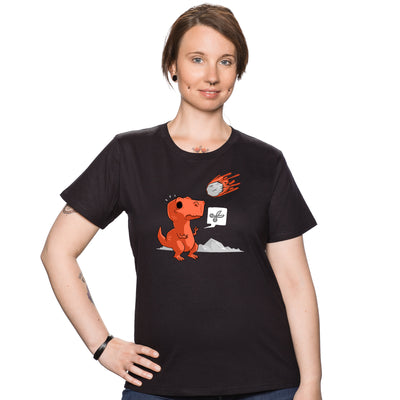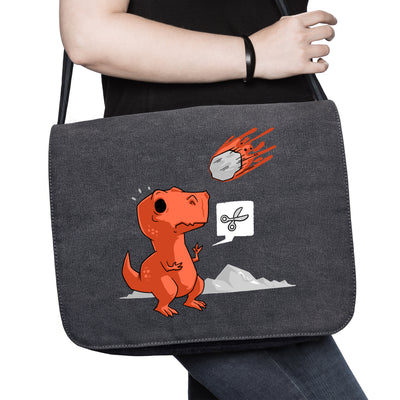 Les règles sont simples, mais les enjeux sont élevés : Dans cette partie de Ciseaux, Pierre, Papier, un dinosaure joue pour sa vie. Le pauvre T-Rex avec ses trois griffes choisit naturellement l'option Ciseaux. La pierre bat les ciseaux. Mais dans ce cas, la « pierre » est un astéroïde avec des forces de destruction énormes - et il bat non seulement les ciseaux, mais aussi le globe entier. Dans cette partie fatidique de Ciseaux, Astéroïde, Papier, c'est donc l'astéroïde qui gagne, et contre toute la population de dinosaures !