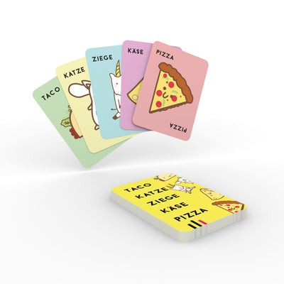 Dans lequel Jeu de fête "Taco cat cheese pizza". Le nom de ce jeu dit déjà tout ce que tu dois savoir pour commencer à jouer et t'amuser avec jusqu'à sept joueurs : Chaque joueur reçoit une sélection aléatoire de cartes représentant un taco, un chat, une chèvre, un fromage ou une pizza. Le but est de se débarrasser de ces cartes le plus rapidement possible - et c'est là que le plaisir commence !)