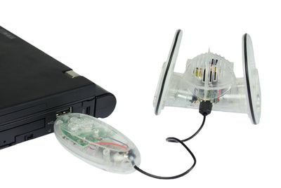 Le Trekbot est un petit robot télécommandé par infrarouge, équipé de roues et d'yeux lumineux (ce qui est particulièrement intéressant dans l'obscurité). Avec les Trekbots, tu peux organiser des courses passionnantes avec tes collègues pour les chaises de bureau ou des combats passionnants sur les bureaux, ce qui permet de chasser rapidement l'ennui.
