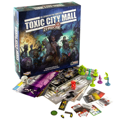 Toxic City Mall est une extension pour la saison 1 ou 2 de Zombicide - mais elle ne remplace pas le jeu de base, qui n'est malheureusement plus disponible. Avec cette extension, le décor typique des centres commerciaux apocalyptiques est ajouté. Il y a 4 nouveaux scénarios, de nouvelles figurines et aussi de nouvelles règles et modes qui apportent de la variété. Par exemple, tu apprendras à faire le mort. ;)