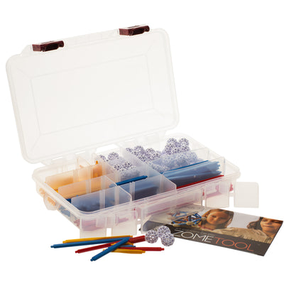 Das Zometool Konstruktionssystem wird zur Nachbildung und Veranschaulichung von Strukturen aus der Chemie, Biologie, und Physik genutzt. Dabei ist es für Wissenschaftler:innen jedes Alters geeignet, auch für Kinder. Herzstück des brillanten Stecksystems ist die Verbindungskugel, die viele Öffnungen in insgesamt drei verschiedenen Formen hat. An diese Basis lassen sich verschieden lange Stäbe setzen.