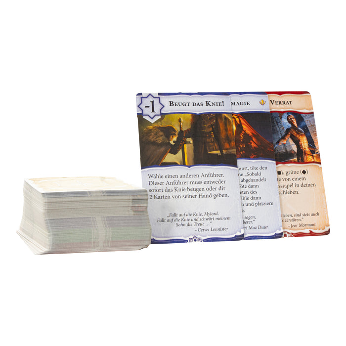 Pendant les tours de jeu, tu coopéreras avec d'autres joueurs et optimiseras la valeur de vos piles de cartes communes. En même temps, tu dois bien sûr t'efforcer de faire mieux que tes adversaires à la fin de la partie. C'est exactement comme dans la série de livres "A Song of Ice and Fire".