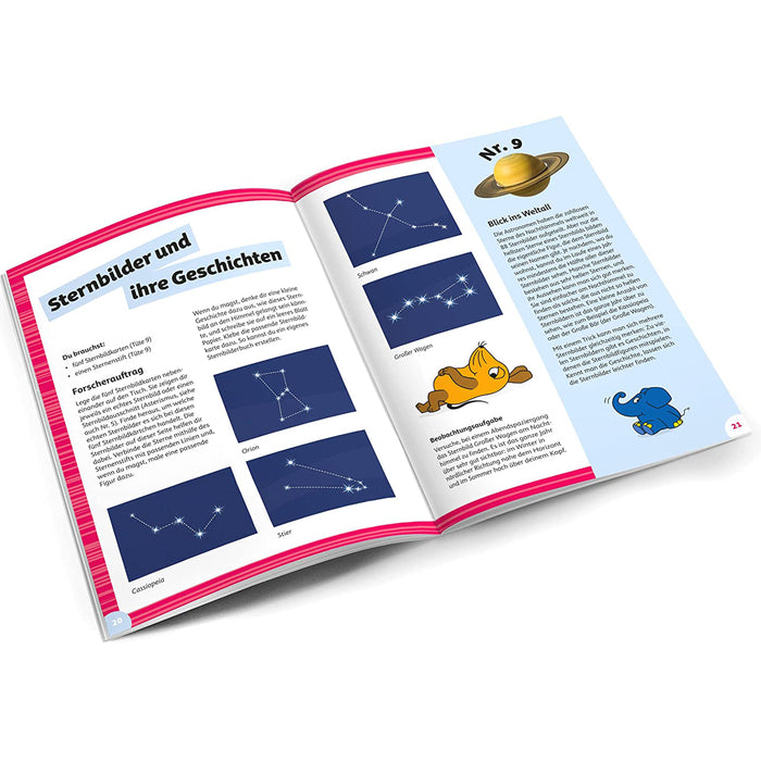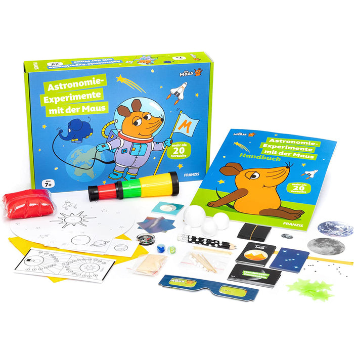 • Die Versuche lassen sich jeweils in ca. 10 Minuten mit dem beiliegenden Material, sowie wenigen haushaltsüblichen Gegenständen durchführen. Dazu bekommt ihr ein Handbuch, das nicht nur erklärt, wie die Experimente durchgeführt werden, sondern auch noch spannende Hintergrundinfos zu den einzelnen Themen liefert. Wie man es von der Maus kennt, ist das Ganze natürlich nicht nur für die Kinder, sondern auch für Erwachsene noch interessant! ;)
