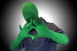 L'élégant trois-pièces vert que nous avons ici pour toi a un énorme avantage : c'est... un trois-pièces et non une combinaison (l'avons-nous déjà mentionné ?). Cela signifie que tu peux porter tes vêtements habituels et couvrir le reste - c'est-à-dire généralement les mains et la tête - avec le tissu vert. Les gants mesurent environ 51 cm de long et arrivent à peu près jusqu'au coude. Le couvre-chef ne s'arrête pas non plus au menton, mais tombe presque sur les épaules, de sorte qu'il couvre également une encolure normale.