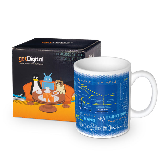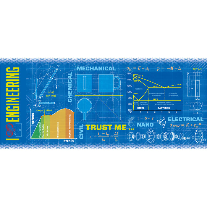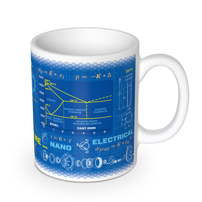 Bon, la dernière phrase est peut-être un peu exagérée, mais il suffit de jeter un coup d'œil sur le gobelet scientifique "Ingénierie mécanique" pour voir ce à quoi les demi-dieux en chemise à carreaux sont confrontés : les bases de la statique, un diagramme contrainte-déformation, le boulon hexagonal selon la norme DIN 931 - sans ces choses, les voitures, les avions et autres nous exploseraient probablement à la figure (si tant est qu'ils démarrent). Et bien sûr, la projection à 3 tableaux ne doit pas manquer sur le gobelet, que certains connaissent et "aiment" certainement encore depuis leurs études. ;)