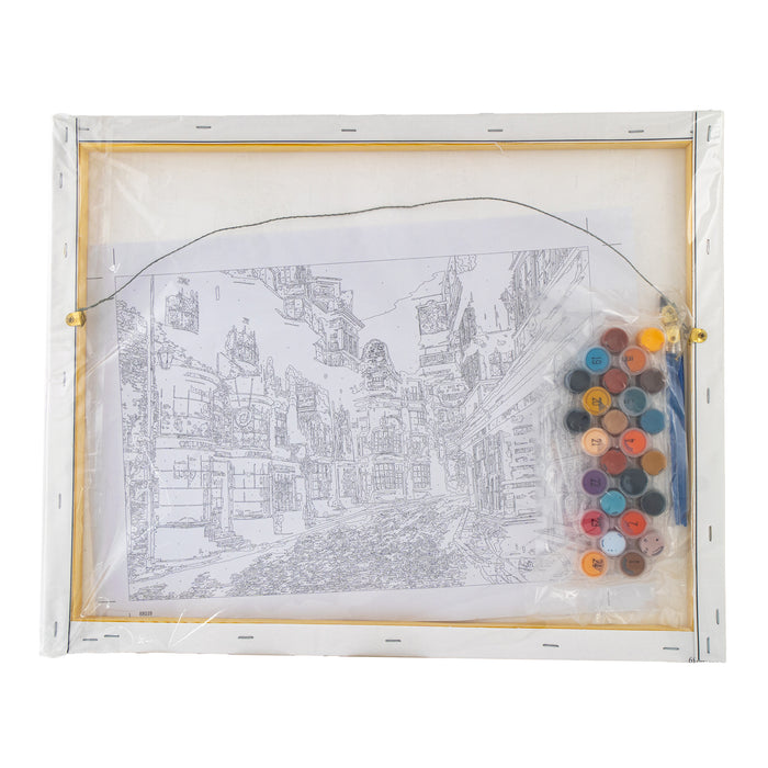 Inhalt: 24 Acrylfarben, 3 Pinsel, 1 Leinwand, Montageset zum Aufhängen