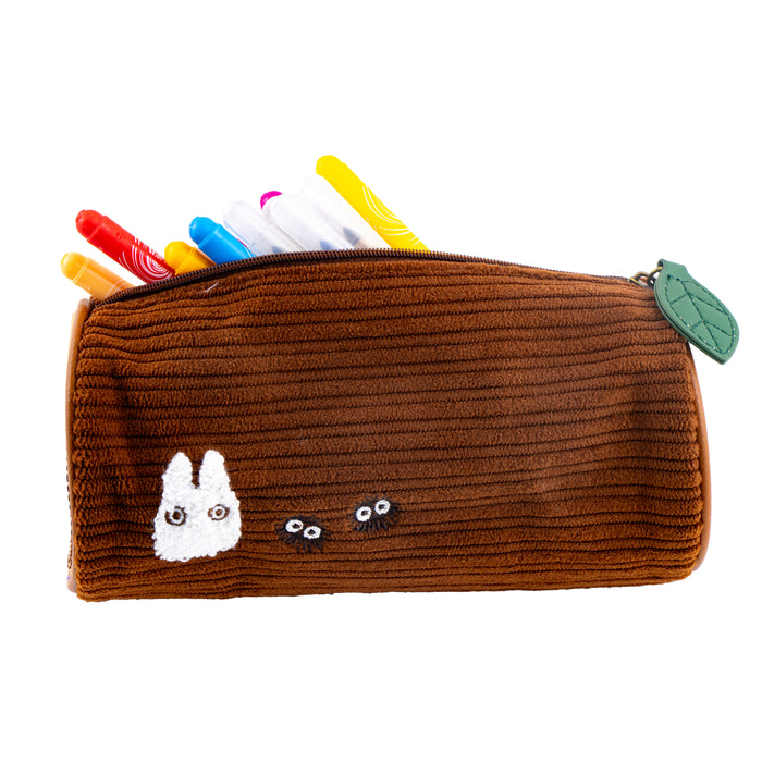 Dans le monde de Mon voisin Totoro, les gens sont encore plus connectés à la nature et à ses esprits. Totoro lui-même est probablement l'un des personnages les plus célèbres de Miyazaki, et dans le film, la maison de l'esprit de la nature est la forêt. La trousse à crayons est en tissu, a la forme d'un tronc d'arbre avec une feuille sur la fermeture éclair et est brodée d'un Totoro duveteux, de deux esprits de suie et d'un Chibi-Totoro blanc. A l'intérieur, il y a beaucoup de place pour toutes sortes d'ustensiles d'écriture et de dessin.