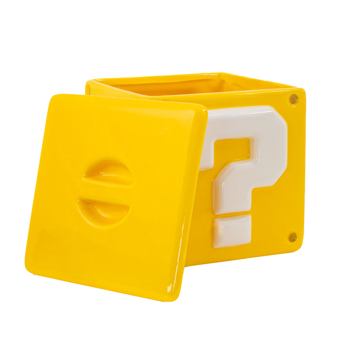 Die Dose besteht aus Keramik und ist lebensmittelecht. Auch leer ist sie dank ihres kultigen Designs eine tolle Ergänzung für den Haushalt eines jeden Super Mario-Fans.
