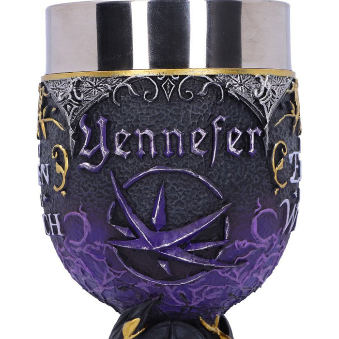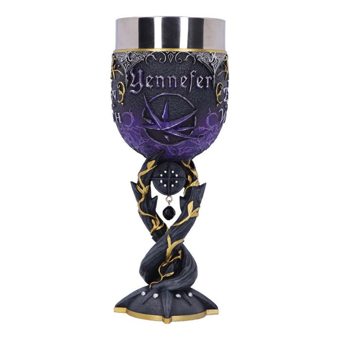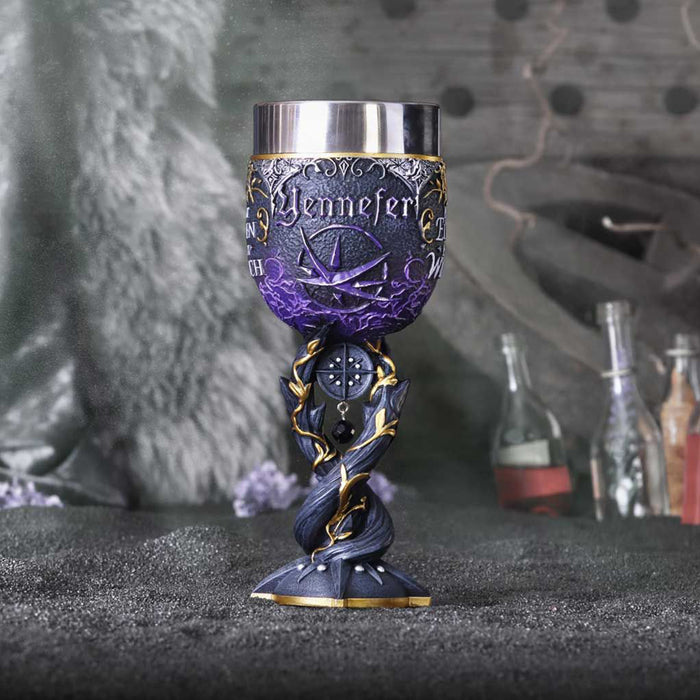 • La coupe de vin dédiée à Yennefer montre en son centre l'étoile d'obsidienne qu'elle porte en collier à tout moment. Ce symbole se trouve également sur la coupe, sur le côté opposé de laquelle se trouvent les mots "Part Elven Part Witch".