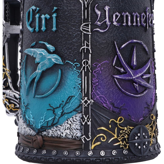 • Pour ceux qui n'arrivent pas à choisir leur personnage préféré parmi ces trois, il existe également une chope de bière dédiée à Geralt, Ciri et Yennefer ensemble. Les éléments des récipients décrits ci-dessus y sont réunis. Elle porte également l'inscription "The Witcher".