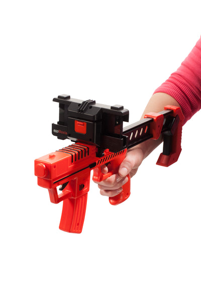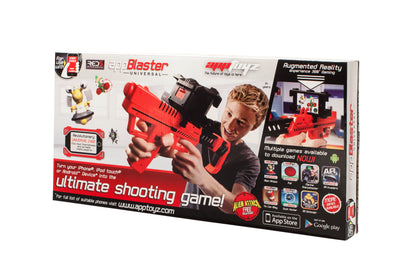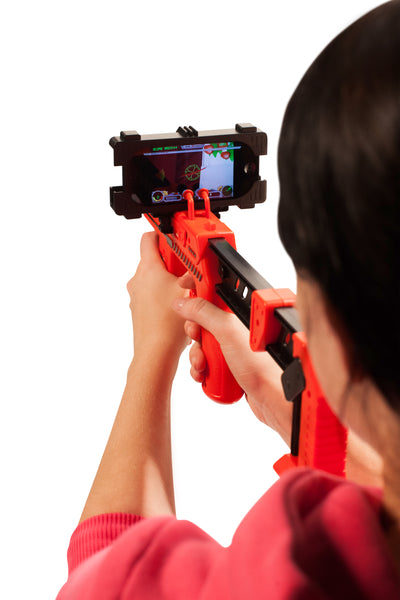 Con l'AppBlaster AppBlaster funziona perché il dispositivo collega il mondo reale con la tecnologia del tuo smartphone. La fotocamera dello smartphone viene utilizzata per scattare foto dell'ambiente circostante, sulle quali viene poi proiettato il gioco. A seconda dell'applicazione selezionata, potrebbero apparire sullo schermo, ad esempio, degli alieni malintenzionati.