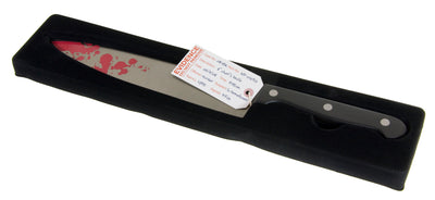 Tra l'altro, il coltello da chef Blutbad viene consegnato come una prova della polizia con un cartello di cartone attaccato.