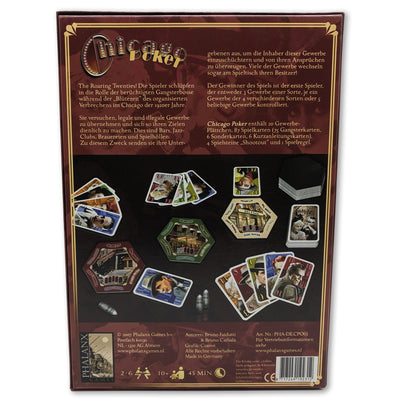 In Chicago Poker - il gioco di società strategico giocare da due a sei giocatori dai dieci anni in su seguono le orme di questi boss della malavita e devono fare tutto ciò che è in loro potere per diventare delle icone della malavita. Ma attenzione: Qui tutto è permesso e se non stai attento, finirai presto a letto con i pesci!