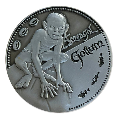 Questa moneta del Signore degli Anelli raffigura motivi estremamente dettagliati dell'universo del Signore degli Anelli: su un lato una rappresentazione di Gollum o Smeagol, sull'altro l'Unico Anello con la sua iscrizione nella Lingua Nera. Questa moneta è limitata a 9.995 pezzi in tutto il mondo ed è numerata singolarmente.