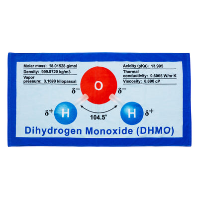 Ma sai esattamente cosa stai facendo a te stesso? Fortunatamente, il monossido di diidrogeno spiaggia e telo da bagno ti mostra cosa può fare l'acqua: Quando ti asciughi o prendi il sole, puoi scoprire la massa molare, la densità, la pressione di vapore, l'acidità, la conducibilità termica e la viscosità dell'acqua rinfrescante. Ma non farti scoraggiare dall'inquietante nome "monossido di diidrogeno": si tratta semplicemente di H20. Ma come sai, puoi confondere molte persone con termini insoliti e dal suono complicato ;)
