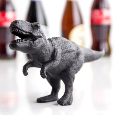 Ma che comodità se non devi usare la bocca, i bordi del tavolo (pensa a tutti i fastidiosi pasticci!) o un accendino, ma hai sempre un T-Rex a portata di mano per fare il lavoro. E nessuno apre una bottiglia in modo così fresco e spietato come il T-Rex. apribottiglie a dinosauro!