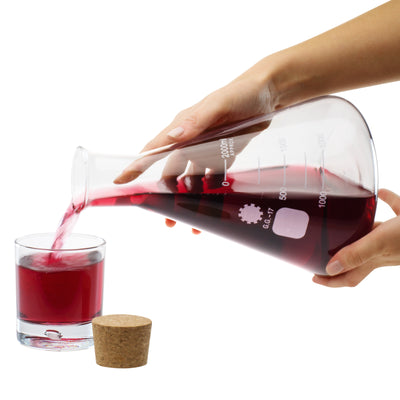 Oh, dove eravamo rimasti? Torniamo al caffè per il momento. Il decanter in vetro può contenere facilmente 2 litri di vino o altre bevande, che possono essere presentate con stile. Cosa sarebbe una cena nerd senza un tocco di atmosfera da laboratorio? ;) È incluso un tappo in vero sughero che permette di chiudere il contenitore. Il collo ha una bella presa e non solo ti sentirai altamente professionale quando farai roteare il vino in questo modo, ma l'insieme ti darà anche la sensazione di una mente brillante che prepara una o due pozioni nella cucina di casa.