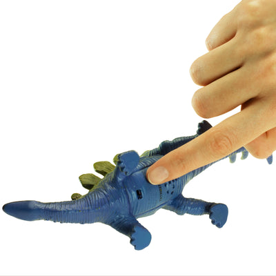 Dimensioni: Stegosauro: lunghezza: 21 cm, larghezza: 6,5 cm, altezza: 7 cm; peso: 77 grammi.