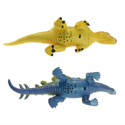 Le citazioni sono le sequenze originali della serie! Entrambi i dinosauri hanno un interruttore che può essere utilizzato per spegnere il suono in modo permanente. Le batterie integrate durano molto a lungo, più a lungo di quanto la maggior parte delle lucertole abbia popolato la terra e sicuramente più a lungo di quanto non facciano i dinosauri. Lucciola. Questo significa più di 500 battaglie in ogni caso ;)