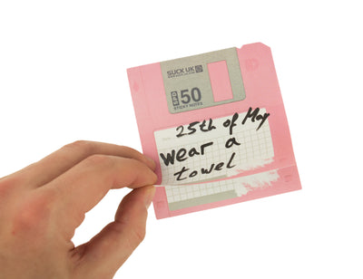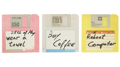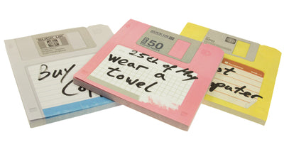 I dischi, su cui è possibile scrivere con qualsiasi penna Floppy disc sticky notesi cui foglietti sono ingannevolmente simili ai floppy disc di un tempo, invitano il nostalgico del PC ad alleviare la sua memoria corta. Puoi facilmente adempiere a tutti i tuoi obblighi di programmazione nella vita reale, perché chi ha bisogno di più di 3,5 pollici di spazio di archiviazione scrivibile? Qualsiasi cosa in più non vale la pena di essere ricordata ;)