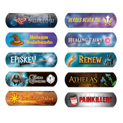 Con il patch nerd di getDigital non hai bisogno di memorizzare nulla! Sui dieci cerotti adesivi che ti aspettano in questo set, puoi dieci diversi metodi di guarigione tratti da famosi videogiochi, film, giochi di ruolo con carta e penna e molto altro. Basta rimuovere la pellicola protettiva dal retro, attaccare il cerotto sulla ferita e lasciare che faccia la sua magia. Dove: per gli scettici, abbiamo incluso anche un cerotto "antidolorifico" che utilizza la medicina moderna. Così la prossima volta che qualcuno chiamerà un guaritore, sarai ben preparato ;)