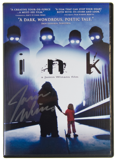 Ink è un film prodotto dalla piccola casa di produzione indipendente Double Edge Films, che non è riuscita a trovare un distributore. Dopo la sua uscita, tuttavia, il film si è diffuso rapidamente tramite la condivisione di file, ad esempio è stato scaricato 400.000 volte in una sola settimana tramite BitTorrent. I produttori si sono quindi espressi a favore di un'ulteriore distribuzione tramite file sharing. Questo esempio dimostra che la condivisione dei file può essere molto positiva per gli artisti. Naturalmente, gli artisti devono comunque guadagnarsi da vivere (hanno prefinanziato il film interamente da soli), per questo motivo puoi non solo sostenere il file sharing ma anche gli artisti direttamente acquistando questo DVD.