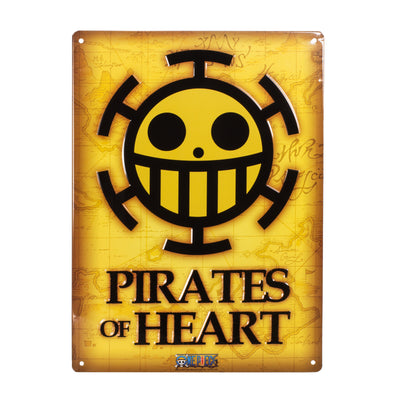 Questa targhetta in metallo stampata e goffrata in modo colorato riporta la scritta bandiera della banda di pirati Heart. Per evitare che l'insegna cada dalla parete anche in caso di mare grosso, puoi fissarla facilmente ai quattro fori con viti, chiodi o nastro biadesivo. Ora ti mancano solo una nave, una ciurma e della frutta tropicale per evitare lo scorbuto...