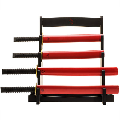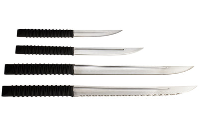 • Set di quattro coltelli e supporto di presentazione in stile samurai.