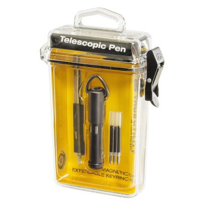 Prendi il tuo mazzo di chiavi e prendi il penna telescopica con portachiavi e tiri fuori la penna telescopica! Questo piccolo portachiavi nasconde una biro perfettamente funzionante sotto il suo cappuccio magnetico, che può essere esteso fino a una lunghezza di 10 centimetri. Dopo l'uso, basta ricomporlo e farlo sparire nella tasca dei pantaloni. Non potrebbe essere più pratico! La penna è fornita in una scatola riutilizzabile in plastica robusta e viene fornita con tre ricariche di ricambio. :)