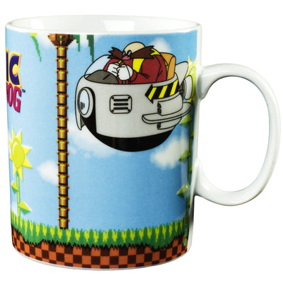 • Tazza da caffè con manico e stampa di Sonic e Dr Robotnik